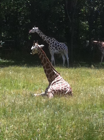 We went to the zoo today. It is the second largest zoo in the country and as Cecil said at Northside about which I will blog later tonight, the San Diego Zoo offers very intimate experiences with animals while the Bronx Zoo offers a large swath of land with animals roaming. Look: the giraffes!