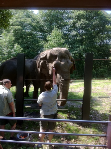 The elephant is getting its nails pared by the zookeepers, since the 40 miles it walks in the wild keeps its nails trim. I like tigers and birds of prey. Kenneth Koch says in his classic literature poem, one of my favorites, “Some General Instructions,” that the elephant is one of the highest animals, which is true. I think the rhino is underrated- his fleshy folds of skin only look hard and menacing, and his horns make him an object for poachers. Poor rhinos.