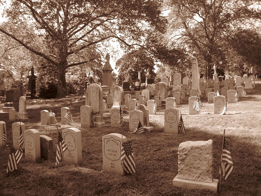 I held the map trying to determine where we were in order to see Horace Greeley’s grave. Go west, young man, but no one knew who he was. We walked through a more modern part of the cemetery where paths had been cut into the hill and white stone walls erected to support the landscape architecture.